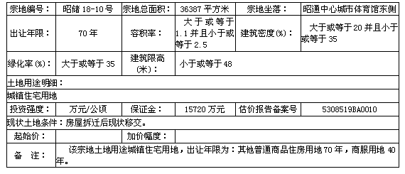 昭通中心城市昭儲(chǔ)18-10號(hào)地塊國(guó)有建設(shè)用地使用權(quán)拍賣(mài)出讓公告