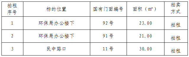 (二)拍租國(guó)有門面5年期使用權(quán),詳見下表: