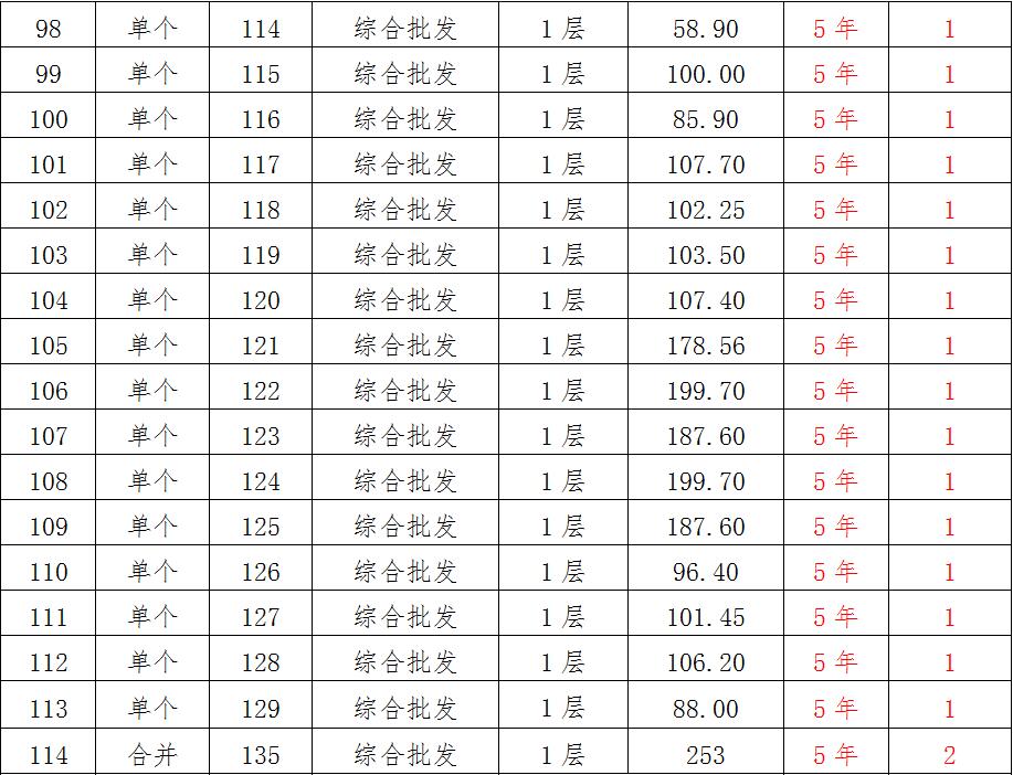(一)拍租位于鎮(zhèn)雄縣南臺街道呢嚕坪安置點7棟獨立商鋪使用權(quán)。以棟為單位拍租。詳見下表:具體面積以現(xiàn)狀實測為準(zhǔn)。