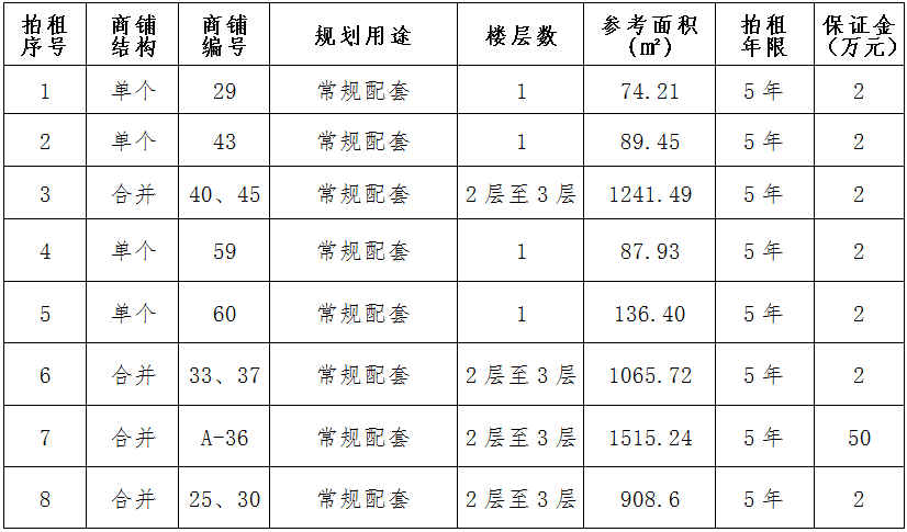 (一)拍租位于鎮(zhèn)雄縣南臺街道呢嚕坪安置點8間商鋪使用權(quán)。以間為單位拍租。詳見下表: