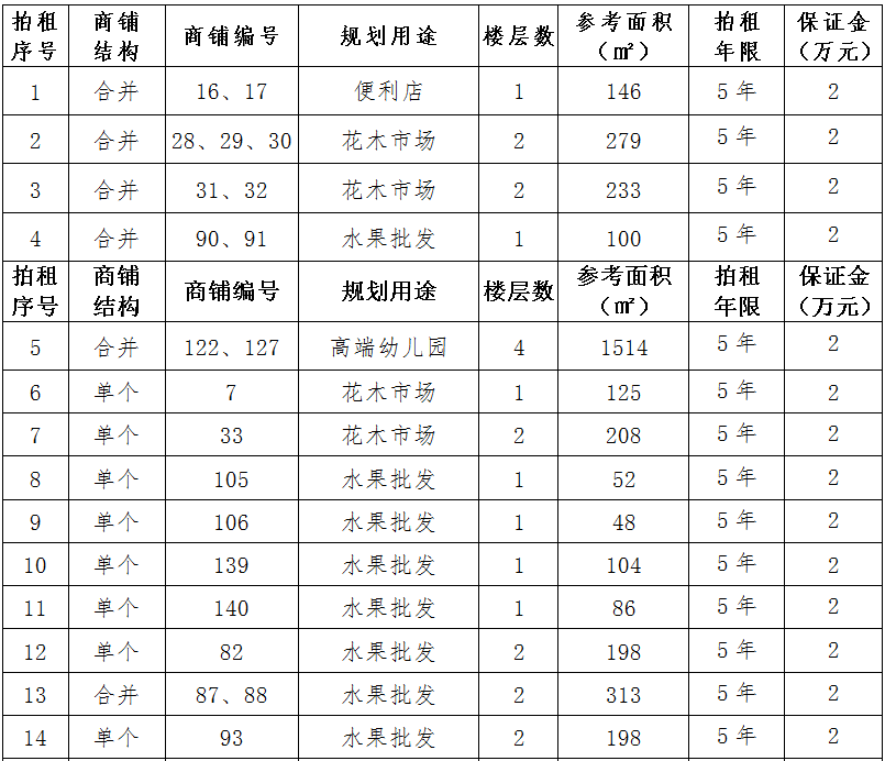 (三)拍租位于鎮(zhèn)雄縣舊府街道魯家院子安置點24間商鋪使用權(quán)。以間為單位拍租。詳見下表: